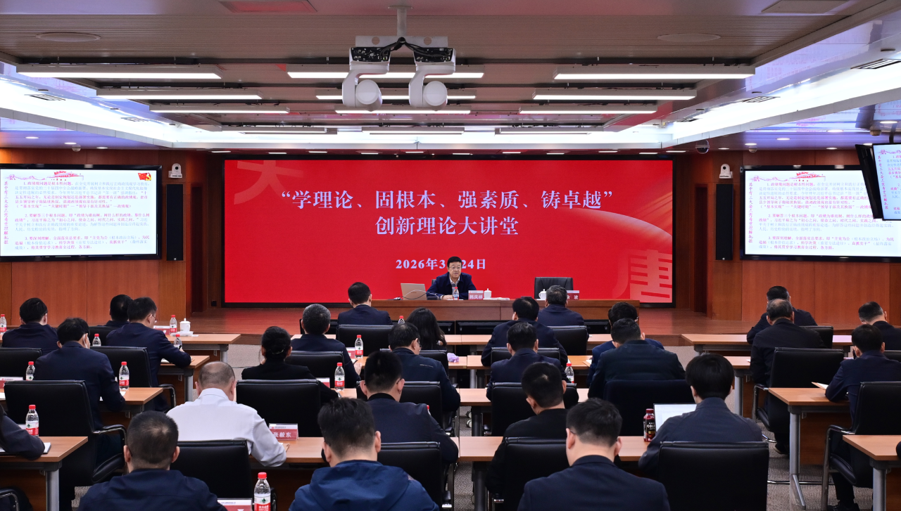 大讲堂以“现场+视频”形式举办。集团公司总部各部门负责人及党员代表在主会场参加讲座;各分子公司领导班子成员、本部中层干部、团委书记及相关人员在分会场参加讲座。